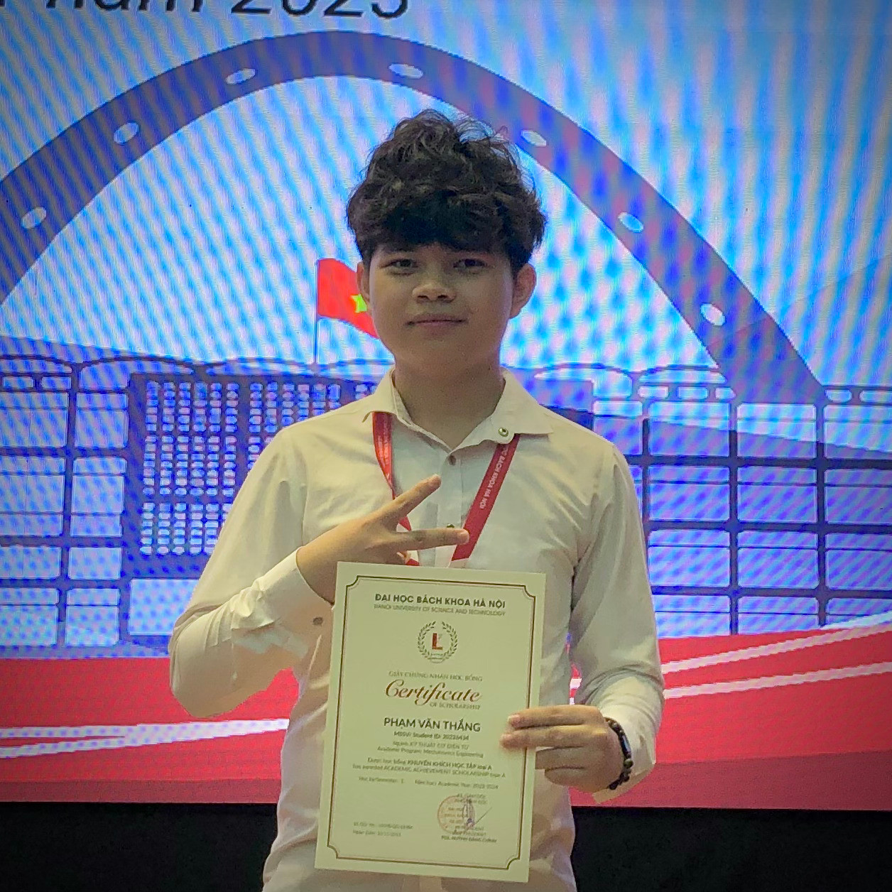 Với GPA thuộc top đầu, Thắng nhiều kỳ liền được nhận học bổng Khuyến khích học tập của trường, học bổng Chắp cánh Bách khoa của Quỹ Chắp cánh (CC Foundation), học bổng Tiếp sức đến trường của báo Tuổi Trẻ năm 2022 và học bổng của Quỹ Đồng hành kỳ 45.