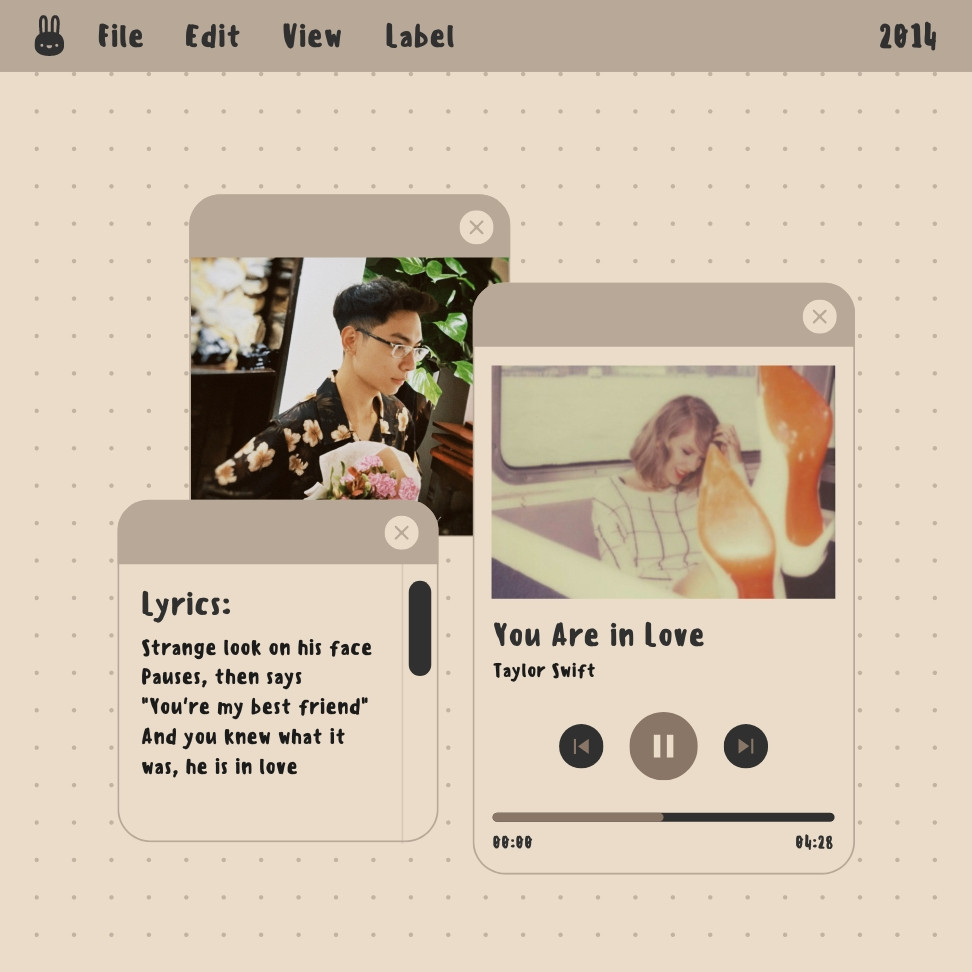 You are in love là ca khúc nằm trong album 1989 của Taylor Swift, với những câu chữ miêu tả sự lãng mạn theo một cách trong sáng nhất. Người mình yêu không nhất định phải người khiến mình trải qua những thăng trầm của cảm xúc, họ có thể chỉ đơn giản là một người bạn, cùng mình chia sẻ những điều giản đơn nhất của cuộc sống. Bởi vì Tình yêu, xét cho cùng, là để khiến cho chúng ta thấy được yêu, được hỗ trợ, và phát triển bản thân.