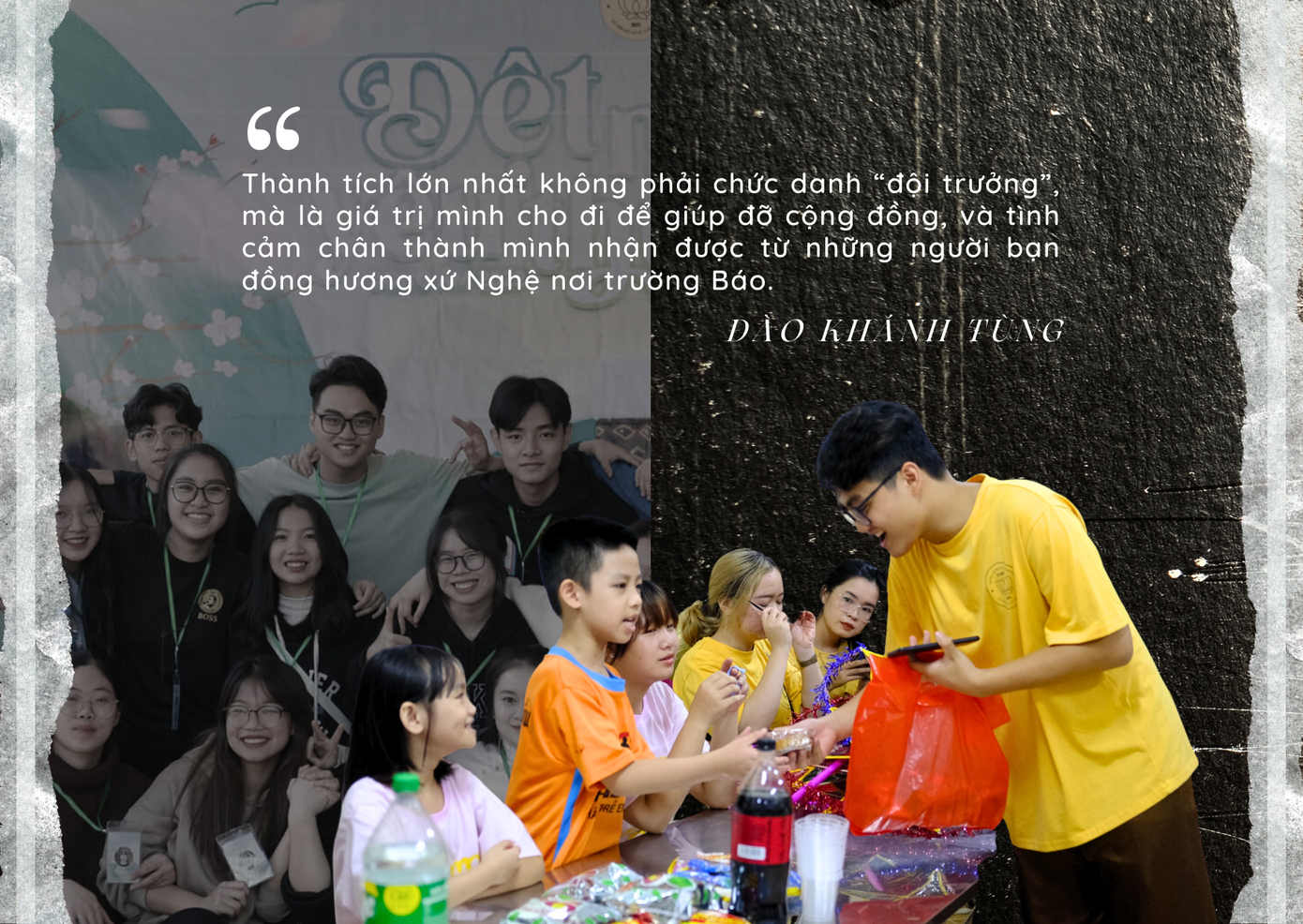 Mặc dù trách nhiệm này đến với mình khá bất ngờ, tưởng chừng như khó có thể hoàn thành tốt được, nhưng đây cũng là nơi để lại cho mình nhiều kỷ niệm đẹp nhất cùng với những người anh chị, người bạn, người em cùng quê tại Học viện Báo chí và Tuyên truyền. Thành tích lớn nhất không phải chức danh đội trưởng, mà là giá trị mình cho đi để giúp đỡ cộng đồng, và tình cảm chân thành mình nhận được từ những người bạn đồng hương xứ Nghệ nơi trường Báo.