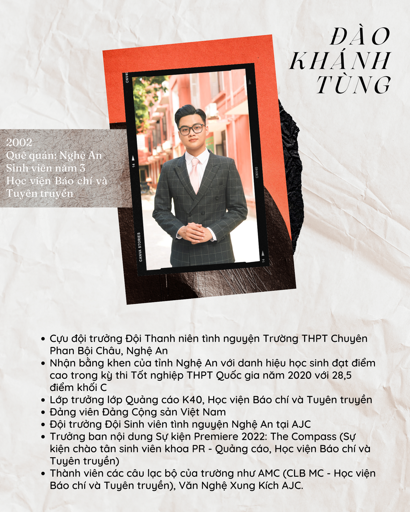 Đào Khánh Tùng đã và đang đảm nhận nhiều chức vụ, đạt được nhiều thành tích trong quá trình theo học tại Học viện Báo chí và Tuyên Truyền. Vậy đâu là thành tích bạn tự hào nhất?