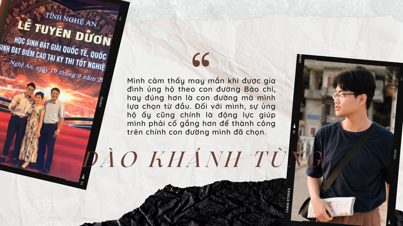 Gia đình mình không áp đặt cho mình một kỳ vọng tại môi trường đại học nào. Mình cảm thấy may mắn khi được gia đình ủng hộ theo con đường Báo chí, hay đúng hơn là con đường mà mình lựa chọn từ đầu. Tuy nhiên, đối với mình, sự ủng hộ ấy cũng chính là động lực giúp mình phải cố gắng hơn để thành công trên chính con đường mình đã chọn.