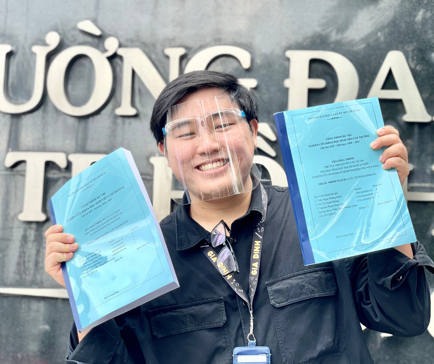 Trước đây, khi thấy các bạn tham gia thi Moot, Quân cũng quan tâm theo dõi nhưng chưa thật sự tìm hiểu kỹ. Chỉ sau khi một bạn cùng lớp đạt giải Quán quân một cuộc thi Moot, Quân mới bắt đầu thấy hứng thú và dần tìm hiểu thêm về Moot. Từ đó, cậu có cơ hội tham gia và làm việc chung với nhiều đồng đội khác nhau qua các cuộc thi như Moot Tryout 2020, IHL Moot 2020, FDI Moot 2021.