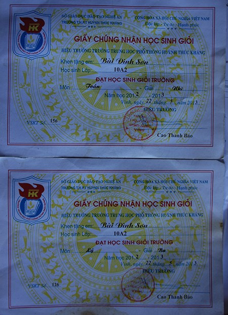 Khó khăn là vậy, nhưng Sơn là học sinh giỏi, làm cán bộ Đoàn năng nổ, được kết nạp Đảng khi đang học lớp 12, Trường THPT Huỳnh Thúc Kháng (TP Vinh).