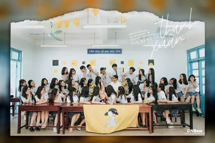 | "Huy mập" chụp hình lưu niệm với thầy, cô giáo Trường THPT Nguyễn Huệ, Huế Ảnh: NVCC |