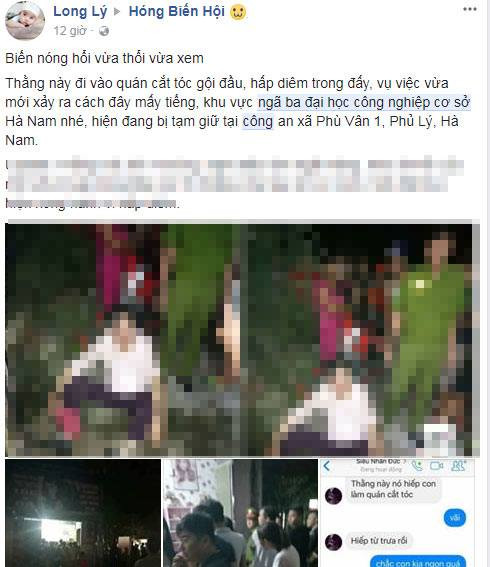 Theo thông tin chia sẻ trên mạng xã hội, một nam thanh niên trên được cho là đã vào một tiệm cắt tóc ở xã Phù Vân (thành phố Phủ Lý, tỉnh Hà Nam) để gội đầu, sau đó, nhìn thấy nữ nhân viên của tiệm ăn mặc mát mẻ nên đã không kiềm chế được ham muốn tình dục vì thế đã hiếp dâm nữ nhân viên này.