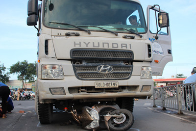 Sau cú va chạm, hai người trên xe máy ngã vào gầm xe bồn. Nam thanh niên bị bánh xe bồn cán qua người, tử vong tại chỗ. Chị Phượng may mắn thoát nạn.