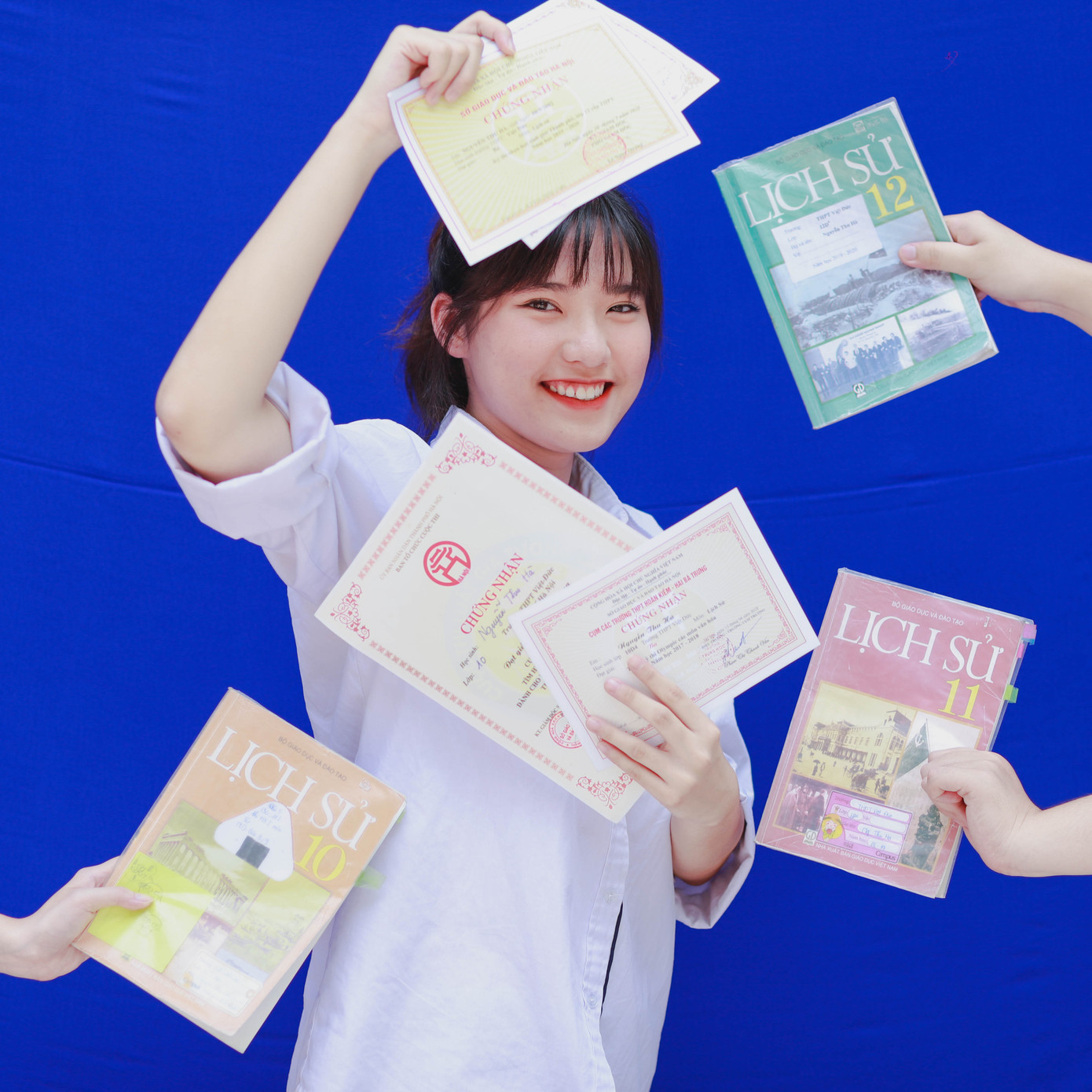 Các teen cuối cấp tự chuẩn bị đạo cụ và cũng chính các bạn học sinh là nhiếp ảnh gia cho bạn học của mình.