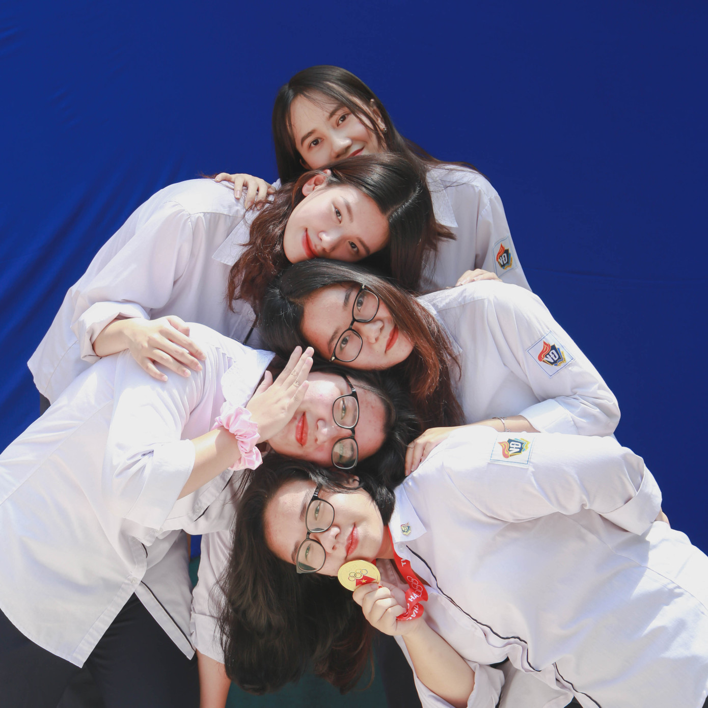 Teen cuối cấp vui vẻ hào hứng chụp ảnh kỷ yếu cho các bạn.