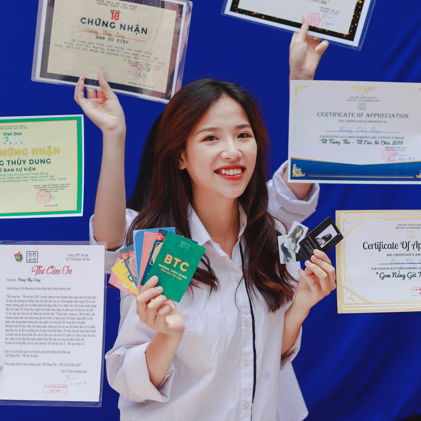 Sôi nổi tham gia các hoạt động, Hoàng Thùy Dung rạng rỡ với loạt thành tích, chứng nhận.