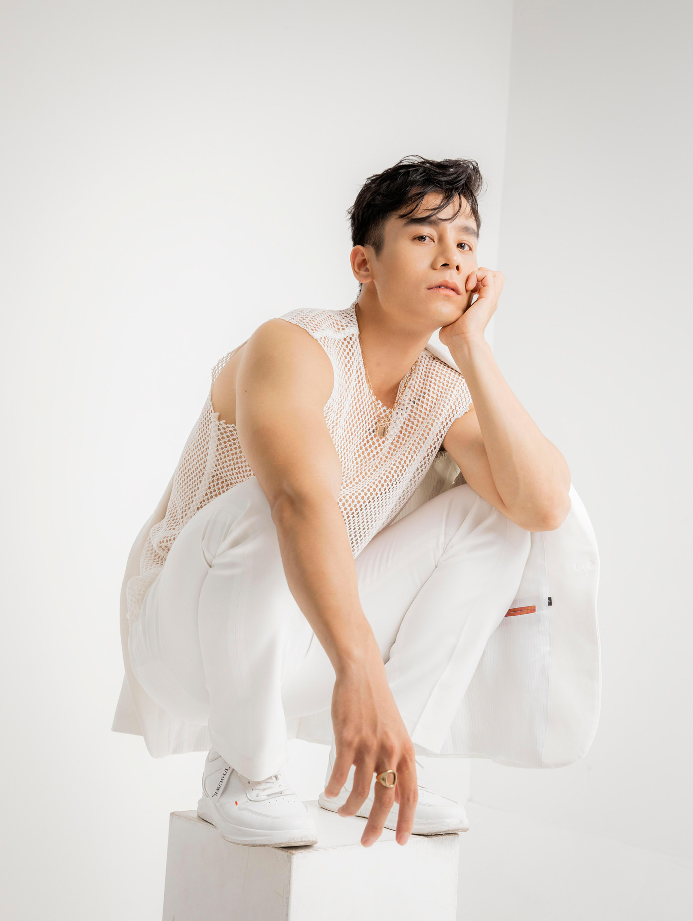 Thoát khỏi hình ảnh Nam vương Thế giới điển trai lịch lãm như vốn dĩ, Cao Xuân Tài bỗng bất ngờ xuất hiện trong loạt ảnh thời trang khác lạ với nguyên cây trắng tinh khôi gồm quần tây, áo lưới và áo vest khoác hờ.