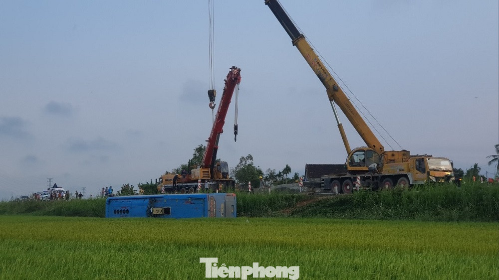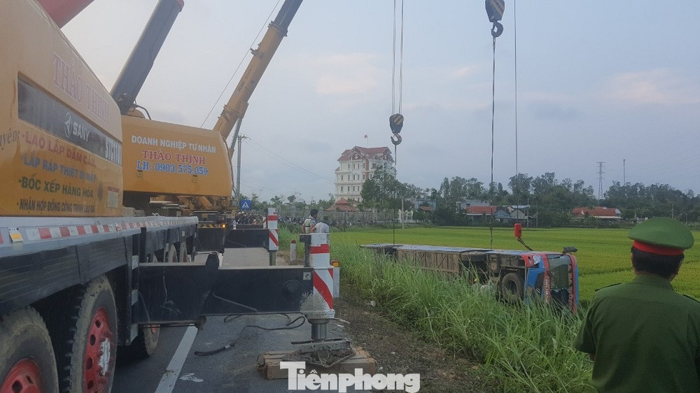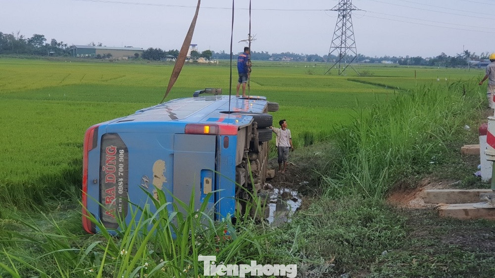 “Lúc chạy ra tôi thấy chiếc xe nằm bẹp dưới ruộng lúa, bên trong nghe tiếng nhiều người gào khóc. Tôi bủn rủn chân tay, chẳng biết làm gì, sau bình tĩnh lại tôi cùng người dân tìm cách tiếp cận các nạn nhân và đưa họ ra bên ngoài. Nhiều người dính bùn đất cùng máu, rất tội”, bà Phương nói.