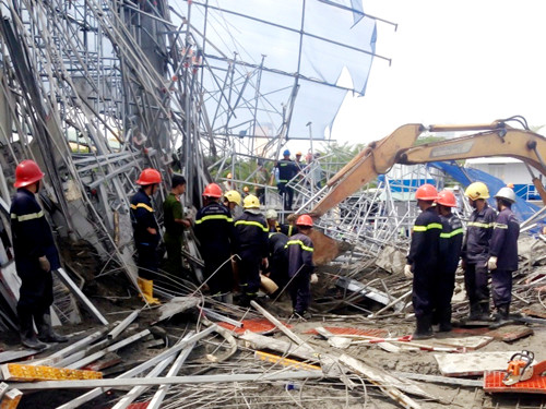 Chiều muộn 10/7 cảnh sát cứu hộ vẫn nỗ lực tìm kiếm nạn nhân còn kẹt trong đống giàn giáo khổng lồ bị sập ở công trình xây dựng tòa nhà 17 tầng trên đường Nguyễn Văn Linh (phường Tân Phong, quận 7). Các xe máy xúc, xe nâng liên tục di chuyển từng khối sắt thép, bêtông đổ nát ra ngoài. Trước đó, ngoài 4 người bị thương, 2 công nhân tử vong đã được tìm thấy.
