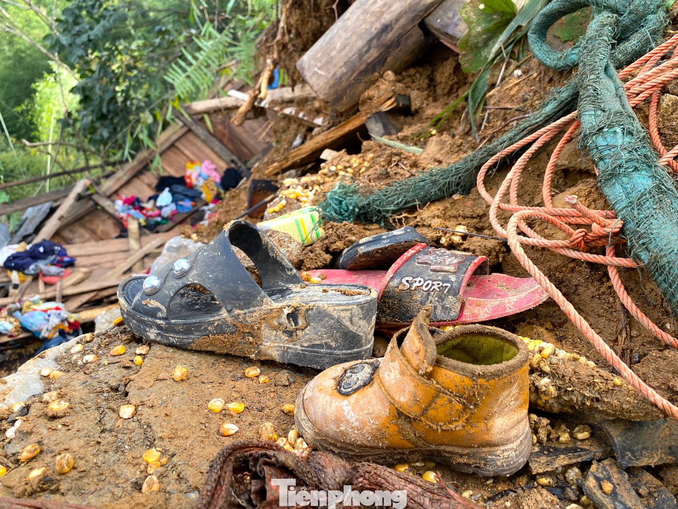 Bà Che cố gắng bới trong đống bùn đất để tìm kiếm những tài sản còn sót lại. Nhưng còn lại chỉ là những bộ quần áo đã rách, những đôi dép đã cũ cùng một ít nồi, chảo bị móp méo sau vụ sạt lở đất.