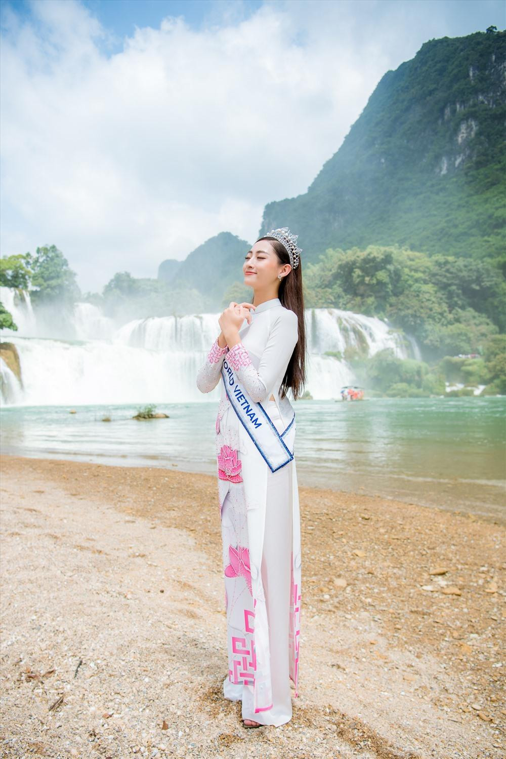 Được biết thiết kế lần này được lấy cảm hứng từ hình ảnh thác Bản Giốc tại quê hương của 'nàng Hậu' (Cao Bằng) - top 4 thác nước xuyên quốc gia lớn nhất trên toàn thế giới. Hình ảnh này cũng từng được cô đưa vào clip tự giới thiệu của mình khi gửi đến cuộc thi nhan sắc Miss World 2019 và đạt thành tích Top 12.