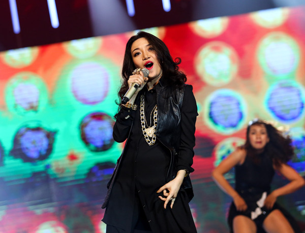 Ngoài phần solo ấn tượng, Phạm Thu Hà còn hòa giọng cùng ca sĩ Trang Nhung và Đức Tuấn trong một ca khúc Rock cực chất: ‘I love Rock and Roll’.