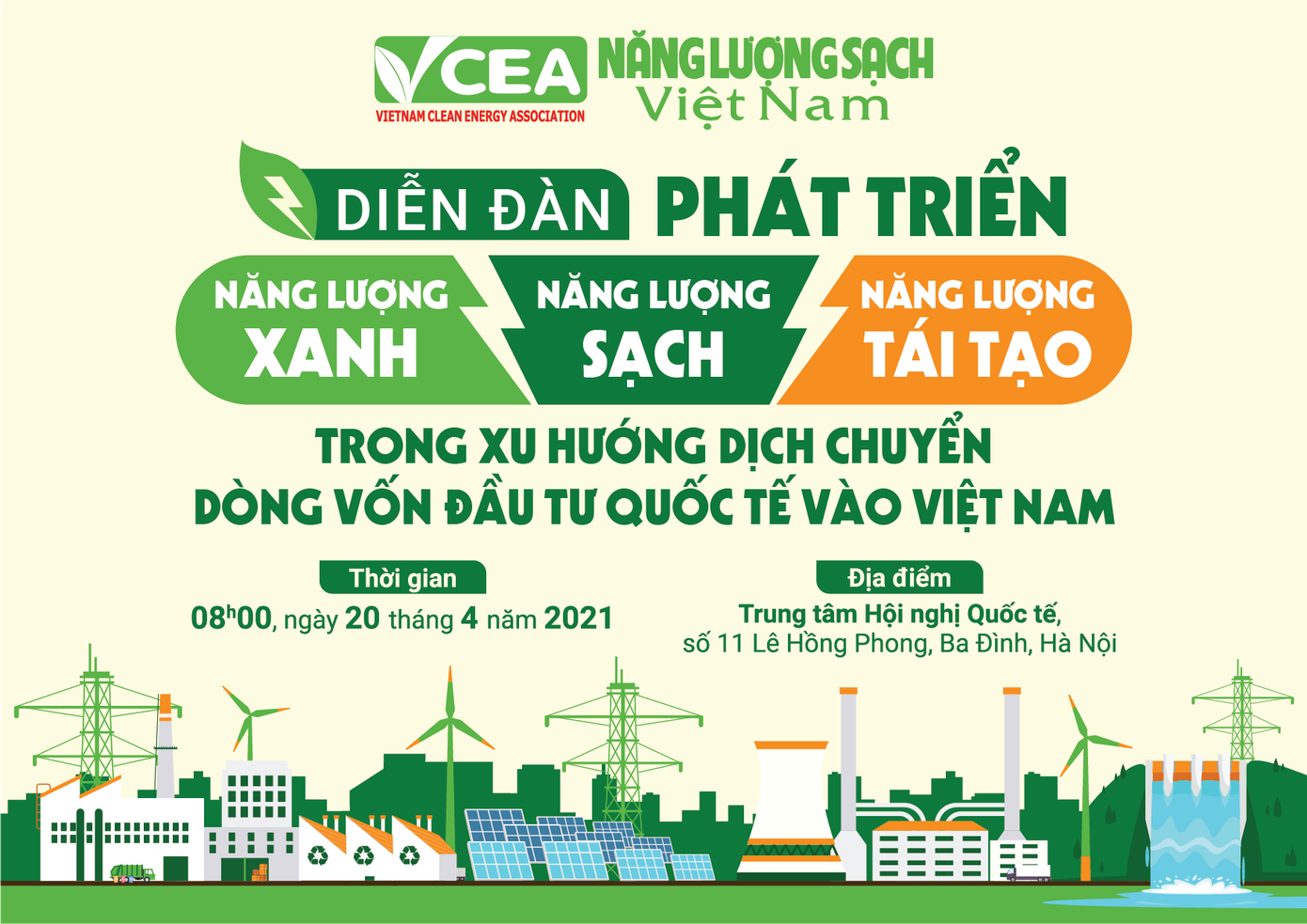 Nhằm kiến nghị các giải pháp liên quan tới chính sách phát triển năng lượng bền vững và hướng đi cho ngành năng lượng tái tạo trong thời điểm Việt Nam có cơ hội tiếp cận nguồn FDI dồi dào, Tạp chí Năng lượng Sạch Việt Nam phối hợp với các cơ quan liên quan tổ chức Diễn đàn phát triển năng lượng xanh, năng lượng sạch, năng lượng tái tạo trong xu hướng dịch chuyển dòng vốn đầu tư quốc tế vào Việt Nam.