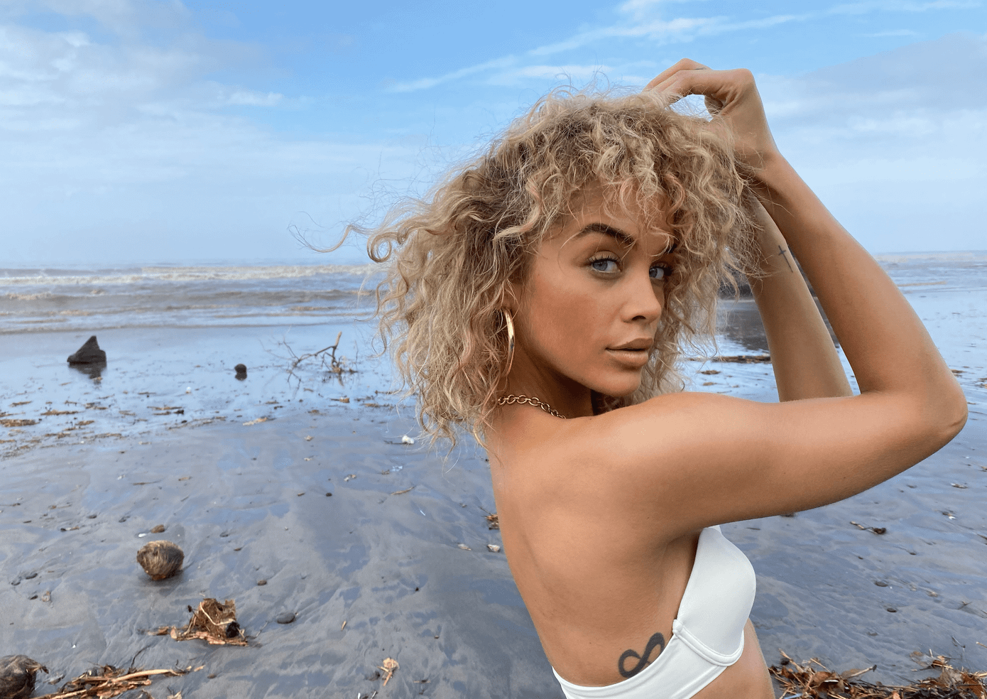 Diện bikini trắng kiểu dáng đơn giản, Jasmine Sanders thả dáng nóng bỏng giữa thiên nhiên.