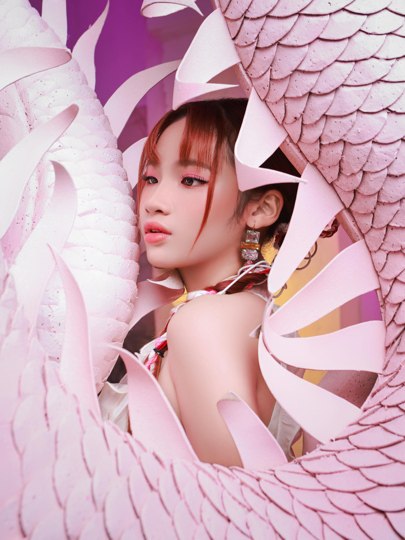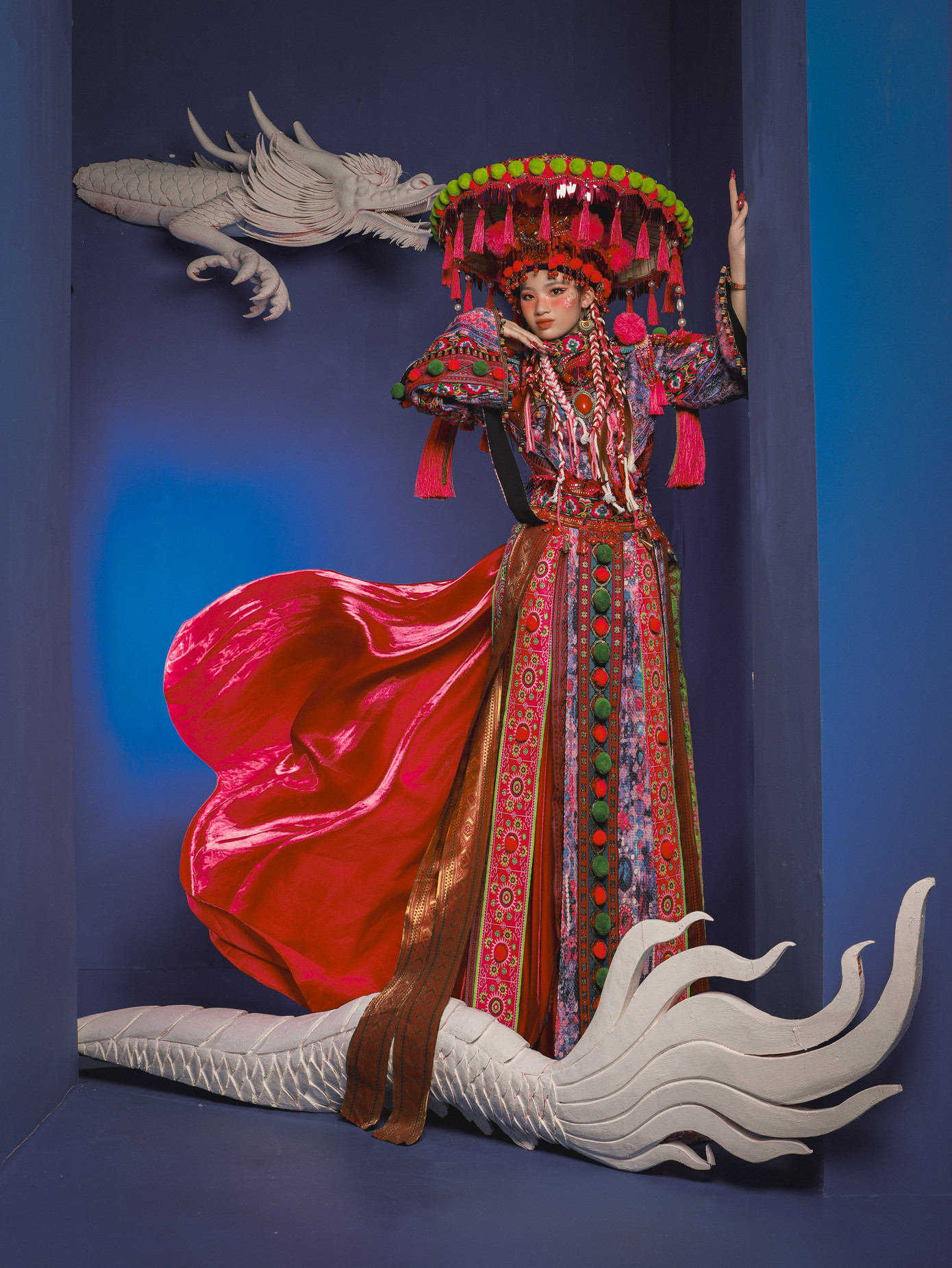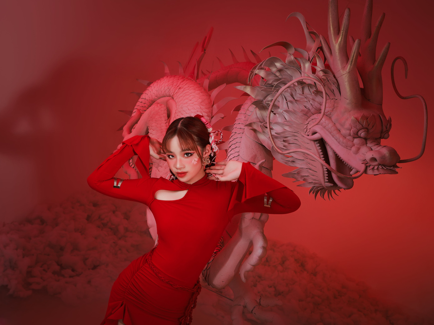 Ở thiết kế thứ ba, Bảo Hà đã mang đến một câu chuyện hiện đại của cô nàng gen Z vào ngày Tết. Mang tư duy thời trang hiện đại, gen Z này không chỉ gây ấn tượng với lối pose dáng chuyên nghiệp mà còn khéo léo mang hình ảnh rồng 3D vào bộ ảnh. Đầu tư thực hiện linh vật rồng khổng lồ, Bảo Hà khiến khán giả phải choáng với 'độ chịu chơi' cho sản phẩm đầu năm của mình.