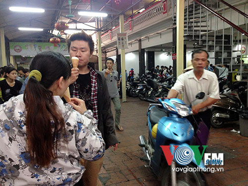 Có lẽ không ở đâu người ta lại có thói quen kỳ lạ ăn kem như ở đây, mỗi người một que, đứng ăn vội vã xong dắt xe đi về