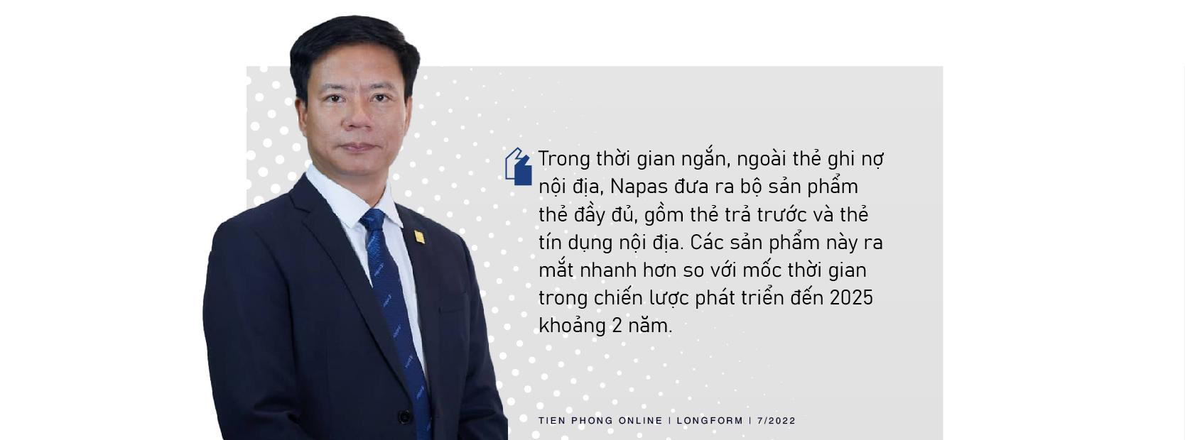 Ông Nguyễn Quang Minh: Việc đầu tiên với sản phẩm thẻ thanh toán. Trong thời gian ngắn, ngoài thẻ ghi nợ nội địa, Napas đưa ra bộ sản phẩm thẻ đầy đủ, gồm thẻ trả trước và thẻ tín dụng nội địa. Các sản phẩm này ra mắt nhanh hơn so với mốc thời gian trong chiến lược phát triển đến 2025 khoảng 2 năm. Theo chiến lược này, dự kiến bộ sản phẩm ra mắt giai đoạn 2022-2023, nhưng căn cứ nhu cầu thị trường và ngân hàng thành viên, Napas đã đẩy nhanh tiến độ để ngay từ đầu năm 2021 cho ra đời sản phẩm thẻ trả trước và thẻ tín dụng nội địa để đáp ứng nhu cầu cung cấp dịch vụ đa dạng ra thị trường của các ngân hàng thành viên.
