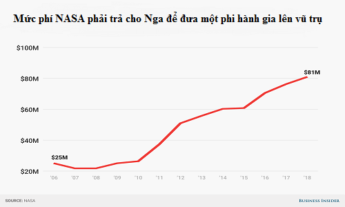 Sau khi ngừng sử dụng tàu con thoi vào năm 2011, NASA hiện nay phải thuê phi thuyền Soyuz của Nga để đưa các phi hành gia lên Trạm Vũ trụ Quốc tế (ISS) và trở về Trái Đất với chi phí tăng dần theo thời gian, theoBusiness Insider.