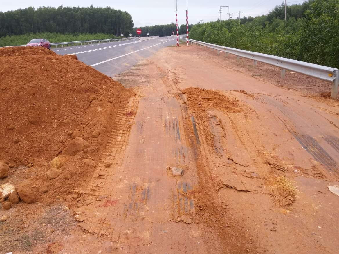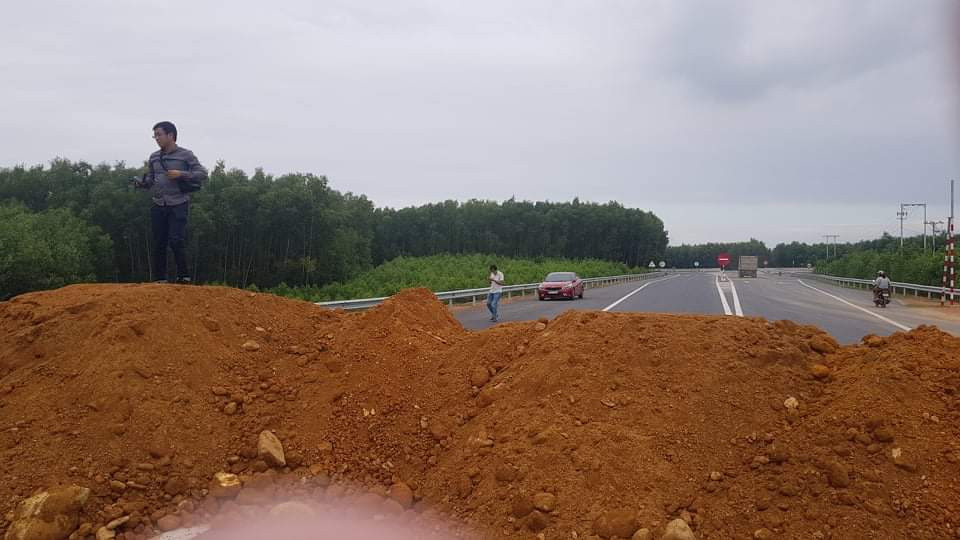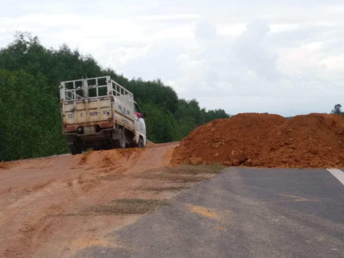 Trước tình hình nêu trên, để kiểm soát hạ tầng tuyến đường, tránh những tai nạn đáng tiếc xảy ra trên cao tốc La Sơn - Túy Loan, chủ đầu tư đã cho đổ hàng chục m3 đất để lập “hàng rào” bất đắc dĩ.