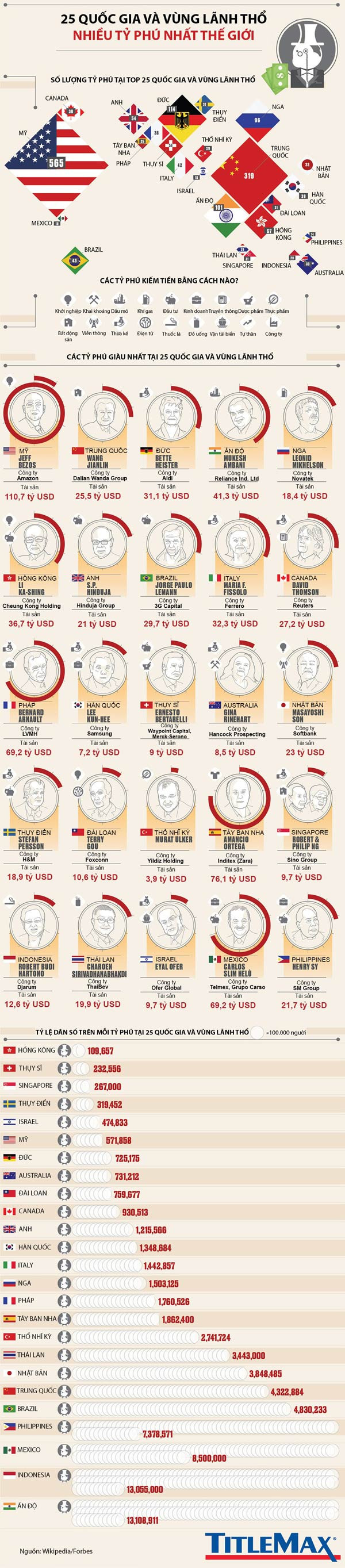 Nền kinh tế nào có nhiều tỷ phú nhất thế giới?