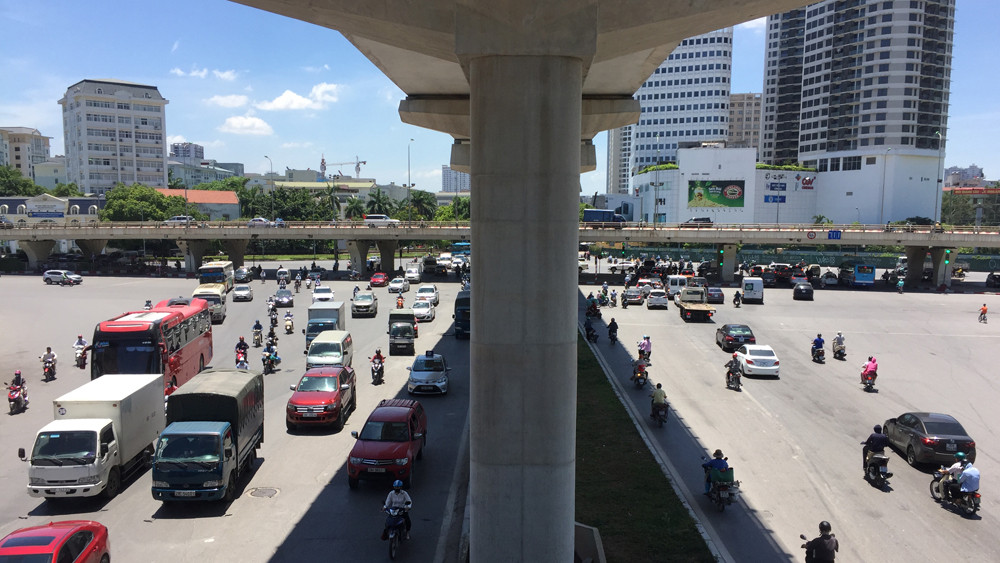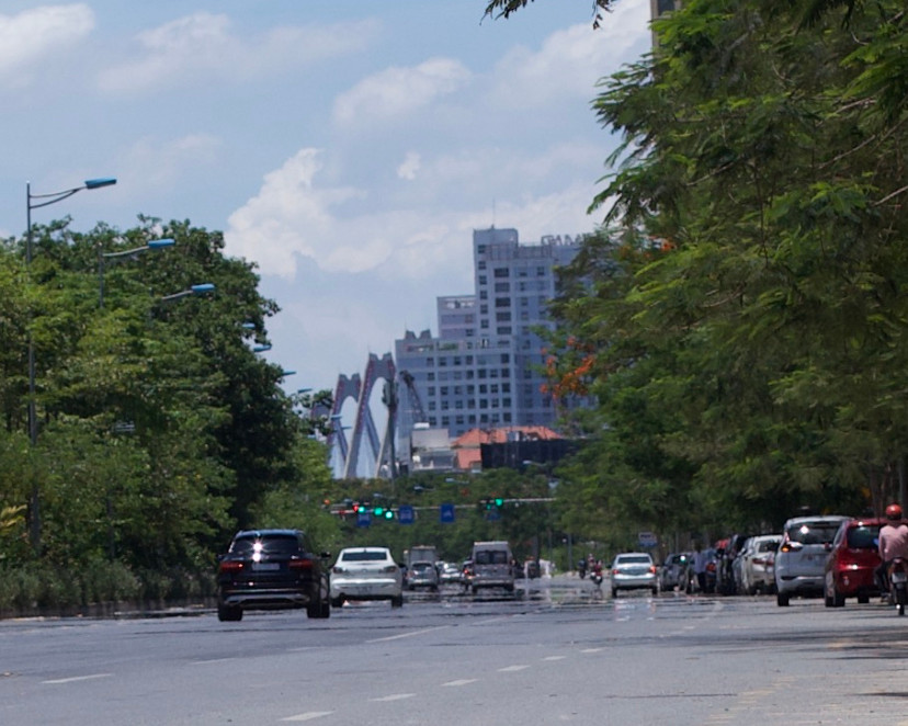 Thời điểm lúc 12 giờ trưa nay, mặt đường trên phố Võ Chí Công xuất hiện ảo ảnh do nhiệt độ cực cao trên mặt đường bốc lên.