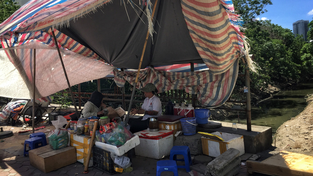 Gương mặt mệt mỏi của người phụ nữ bán hàng rong.