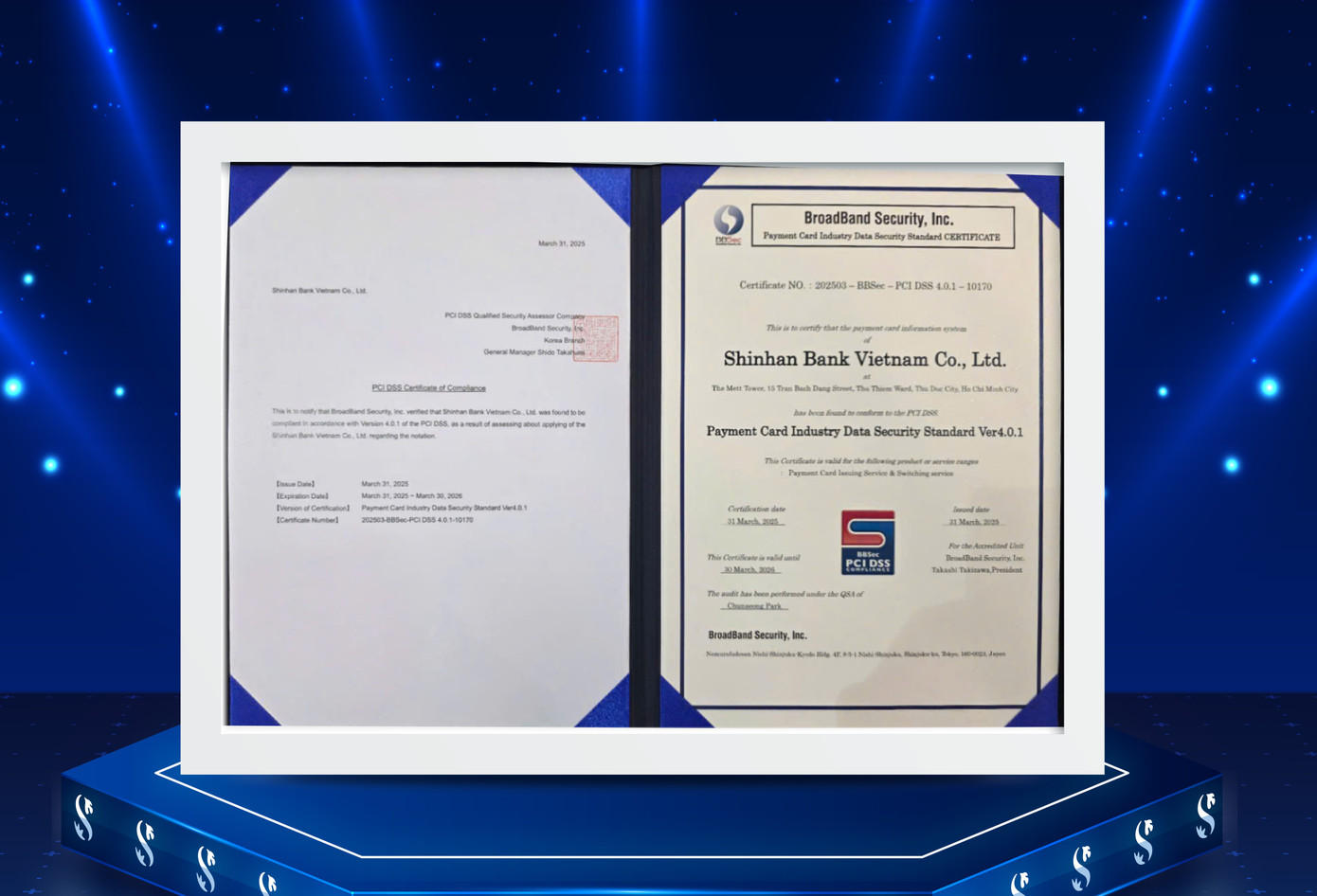 Shinhan tự hào là ngân hàng nước ngoài đầu tiên tại thị trường Việt Nam đạt được chứng nhận quốc tế này, ghi nhận những nỗ lực của Ngân hàng Shinhan trong cải tiến, nâng cấp hạ tầng công nghệ thông tin, nhằm đáp ứng và tuân thủ các nguyên tắc nghiêm ngặt về bảo mật dữ liệu khách hàng.