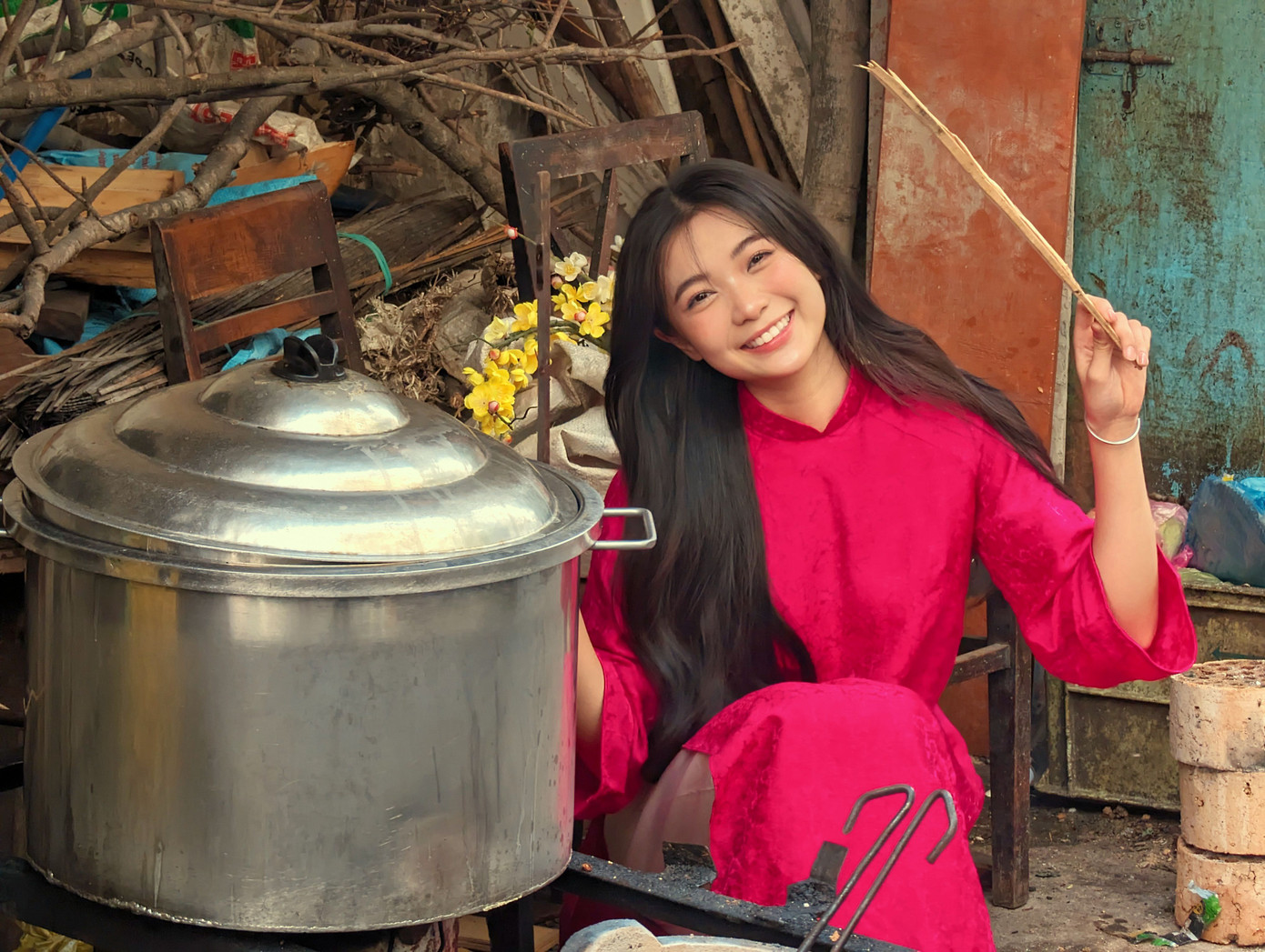 Gần 20 năm đón Tết ở quê nhà, đối với Thy, Tết cho đến thời điểm hiện tại chỉ thay đổi một chút. Thy chia sẻ: “Đa phần mọi người sẽ đón Tết ở nhà cùng người thân, song cũng có một vài hộ gia đình chọn đón năm mới ở những nơi xa hoặc đi du lịch. Nhưng nhìn chung, Tết Việt vẫn giữ được nét truyền thống vốn có của nó. Người miền Trung nơi mình vốn rất dễ thương, chân chất, thật thà và coi trọng tình cảm. Gần nhà mình cũng có một vài hộ gia đình tổ chức nấu bánh chưng, bánh tét nên mình có cơ hội được đến trải nghiệm và làm cùng. Mọi người quây quần bên nhau thật vui vẻ và ấm cúng, rồi kể cho nhau về những chuyện trong năm vừa qua, điều đó khiến tình làng nghĩa xóm ngày càng bền chặt hơn.”