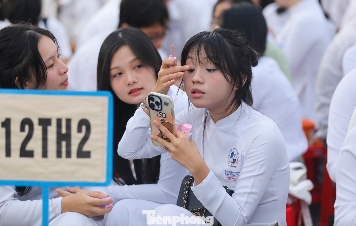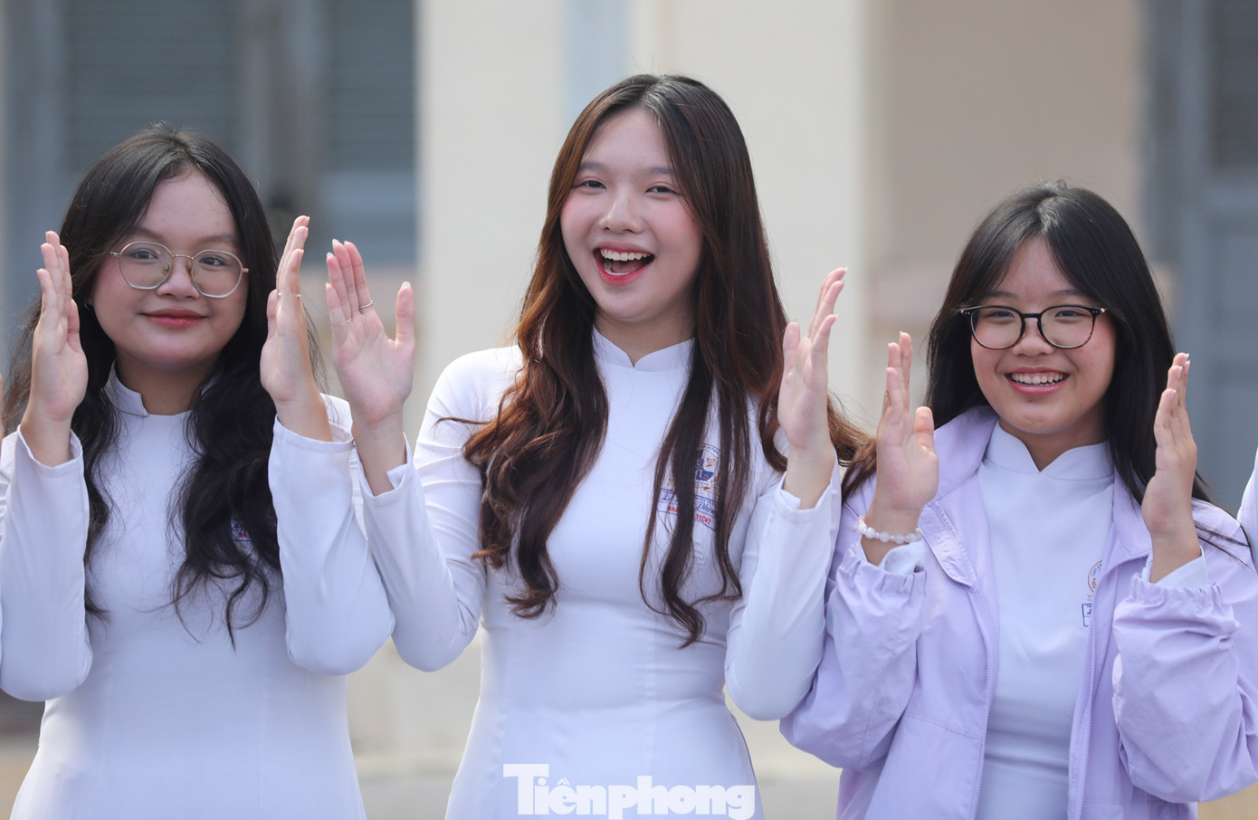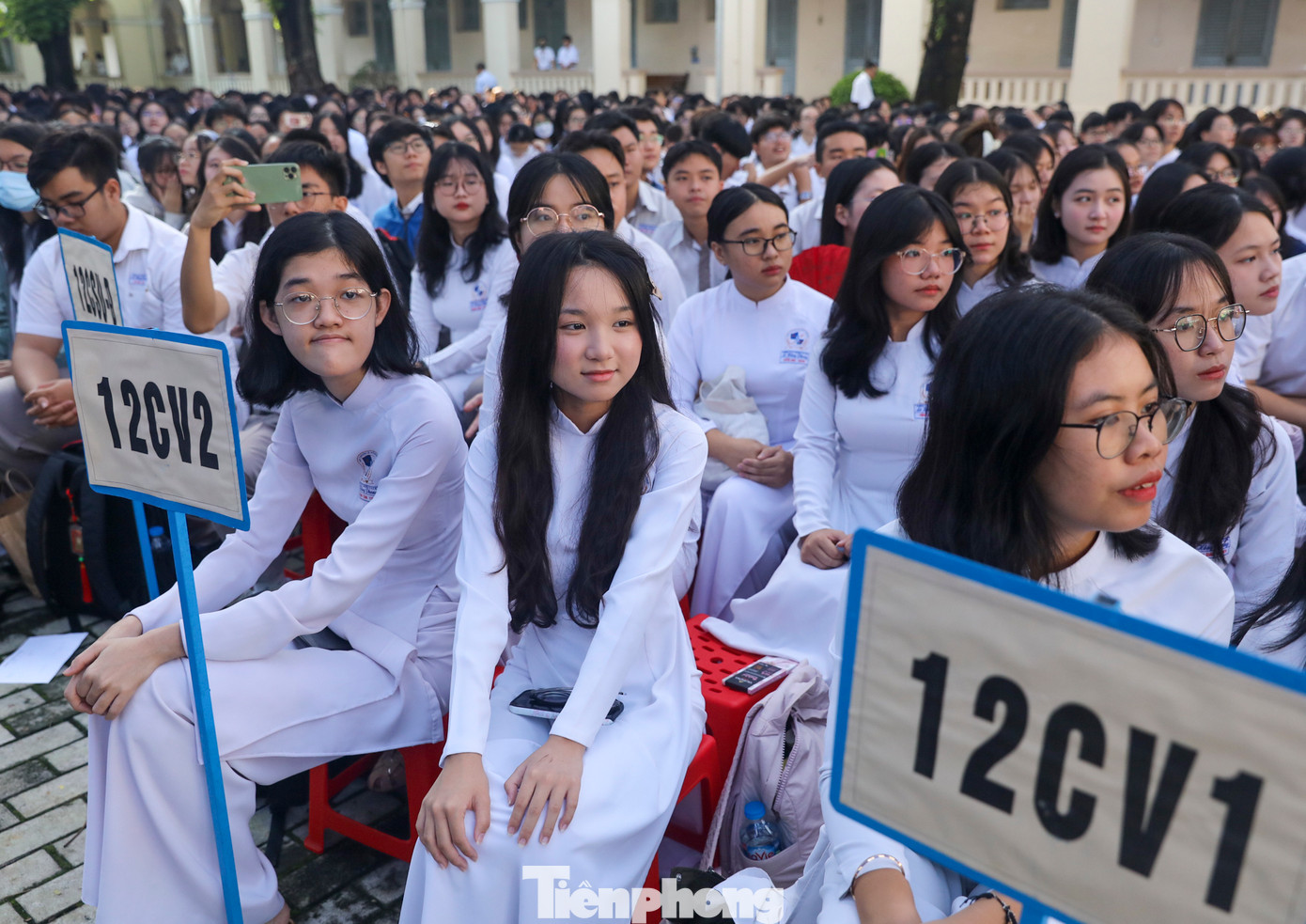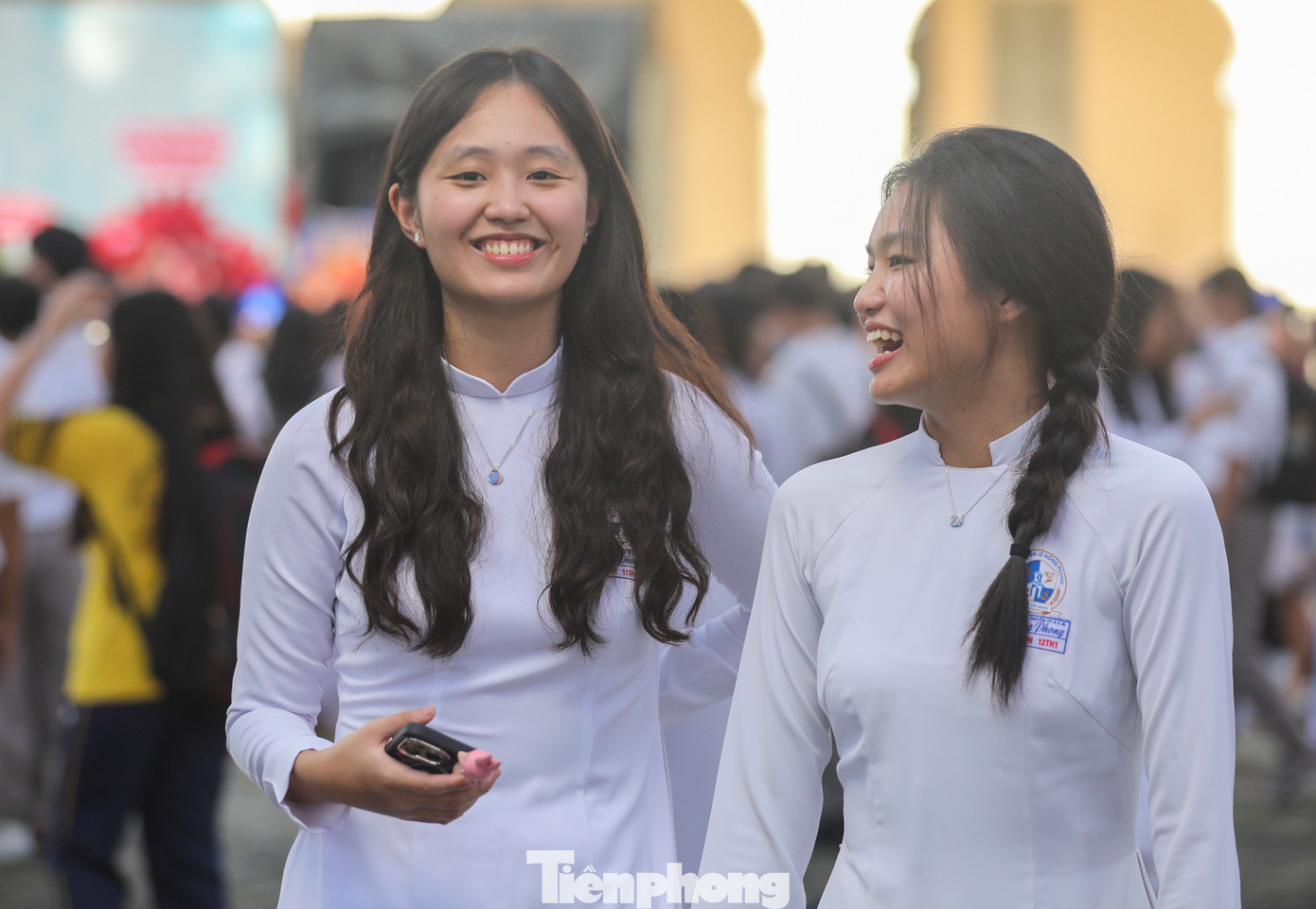 | Những nữ sinh lớp 12 của Trường THPT Lê Hồng Phong rạng ngời trong bộ áo dài, đây cũng là lần khai giảng cuối cùng trong đời học sinh của các em. |