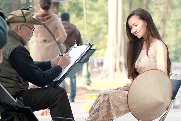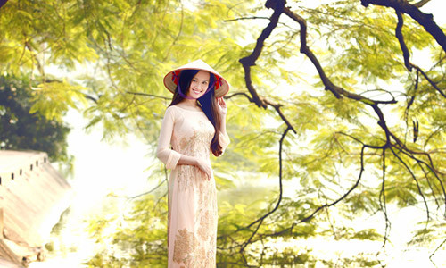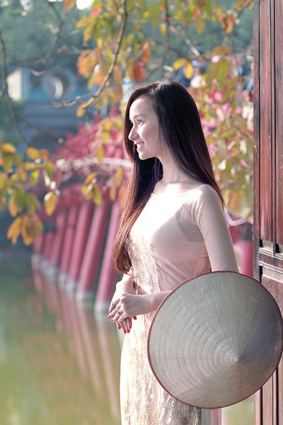 | Trong một chiều đông nắng ấm, bà mẹ trẻ đã ghi lại những khoảnh khắc dịu dàng khi diện áo dài và ngắm cảnh Hồ Gươm. |