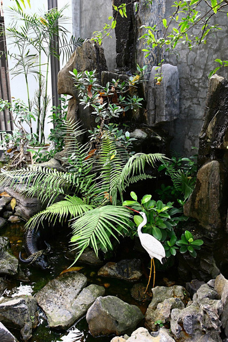 Hình ảnh con trâu của chốn đồng quê xuất hiện trong khu vực tiểu cảnh.