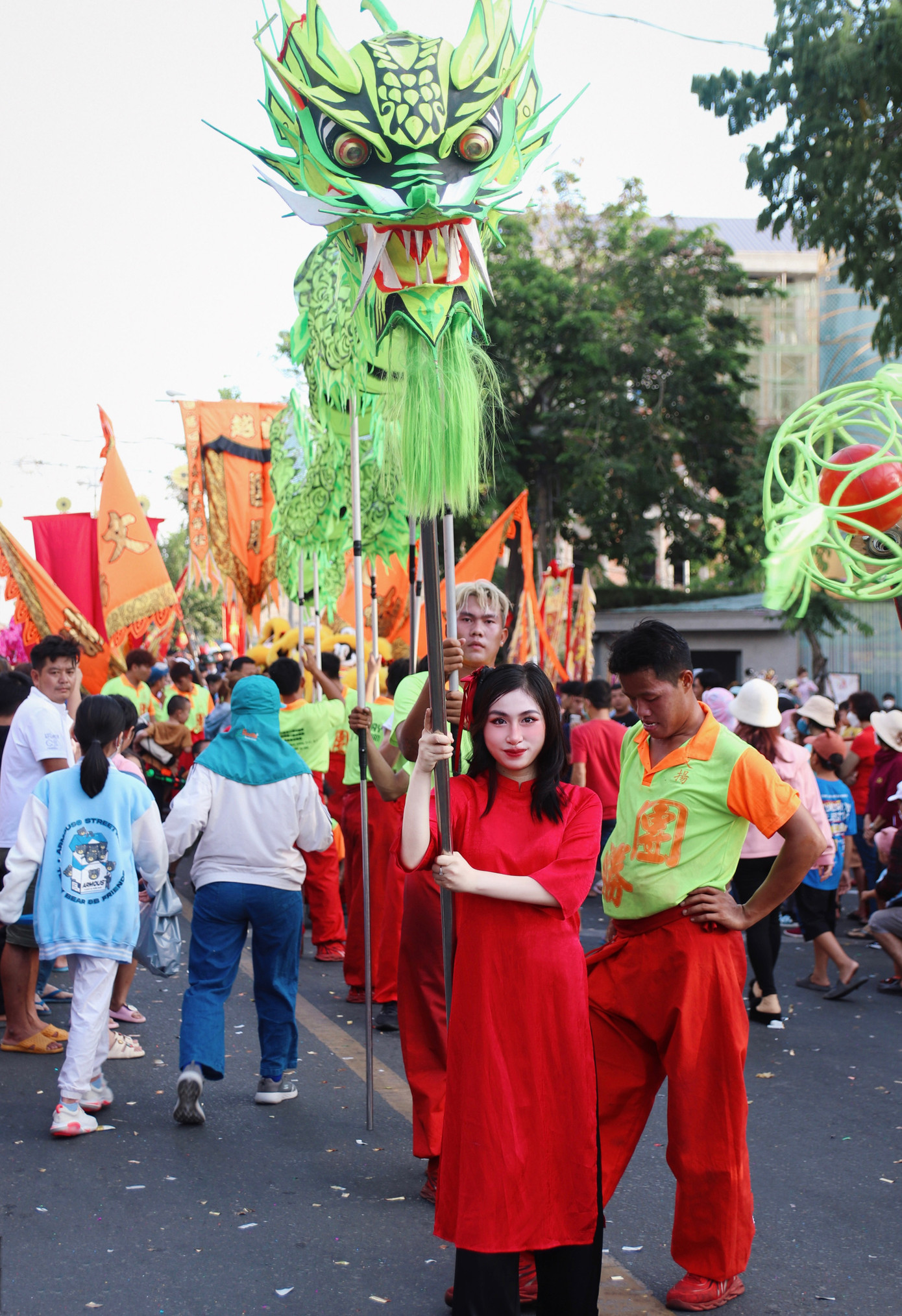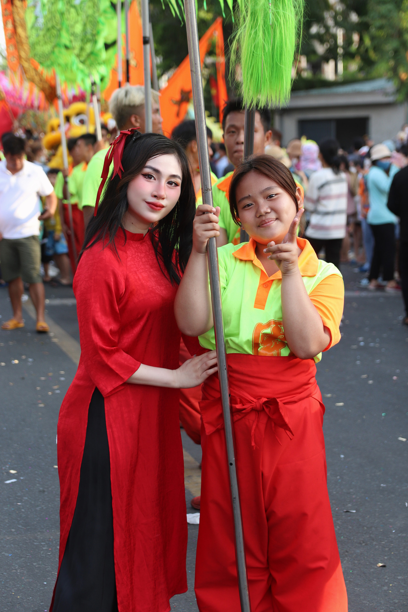 Tiếp sau đó là đoàn người hoá thân thành Tế Công, Phật Bà Quan Âm, Nhị Lang Thần, các tiên nữ, thần tiên, Na Tra, Tây Du Ký, Phước Lộc Thọ đi cà kheo cao vời vợi dưới sự trầm trồ của khán giả. Ngoài ra còn có các đoàn biểu diễn văn nghệ cổ truyền nối đuôi theo sau từ kèn, trống, sáo trúc, đàn tranh, đàn tỳ bà, đàn bầu… Các bạn hoá thân vào vai tiên nữ sẽ dẫn dắt du khách như lạc vào chốn tiên cảnh với các điệu múa lụa, múa quạt, múa dù, múa khăn. Mọi thứ xung quanh thực sự rất đa sắc màu và choáng ngợp bởi sự vui tươi, âm nhạc huyên náo khắp mọi nẻo phố. Cộ Bà còn được nhiều trang báo và mạng xã hội truyền tai nhau với tên gọi “Lễ hội miễn phí”, “Lễ hội có một không hai” bởi vì bạn sẽ được người dân trao tận tay nước suối, nước ngọt, nước sâm và các món ăn thơm lừng mùi vị của người Việt gốc Hoa từ bánh cốm ngò, bánh bao, bánh mì, bún gạo, mì xào… Tỉnh Bình Dương còn chu đáo đến mức dựng lên các quầy y tế, sửa chữa xe, đổ xăng… thậm chí còn có cả “phát” người yêu và tất cả đều miễn phí cho du khách tham dự Cộ Bà.