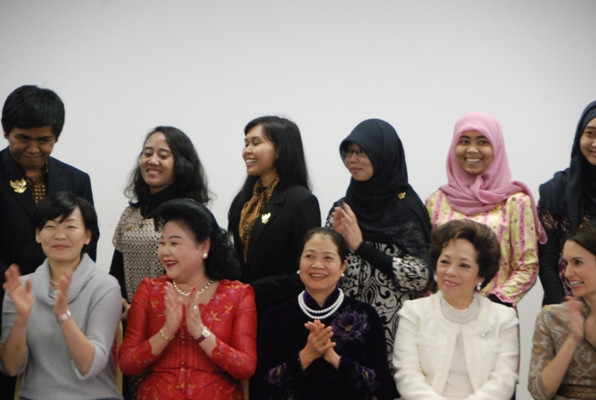 Sáng 13/12/2013, nhân dịp đến Nhật Bản dự Lễ kỷ niệm 40 quan hệ Nhật Bản - ASEAN các phu nhân nguyên thủ ASEAN ( Brunei, Campuchia, Indonesia, Lao, Myanmar, Philippines, Việt Nam…) đã có một cuộc thăm gặp giao lưu với 180 sinh viên Nhật Bản - ASEAN tại Tokyo.