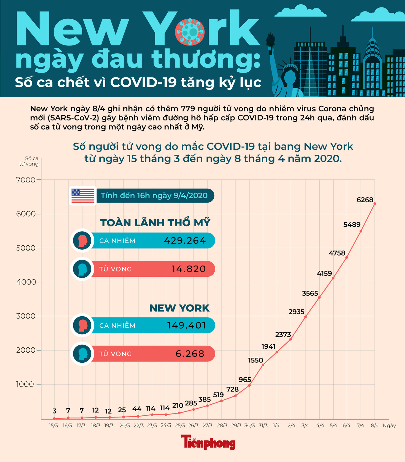 TPO - Ngày 8/4, New York (Mỹ) ghi nhận có thêm 779 người tử vong do COVID-19 trong vòng 24 giờ, lập kỷ lục về số ca tử vong trong một ngày.