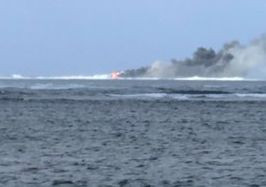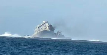 Video và hình ảnh được công bố trên phương tiện truyền thông địa phương cho thấy con tàu Manawanui đã nghiêng hẳn sang một bên và có những cột khói xám dày đặc bốc lên sau khi mắc cạn.