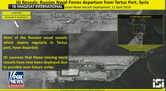 Cụ thể, theo Fox News, hình ảnh vệ tinh và một số báo cáo cho thấy 11 tàu chiến Nga, kể cả tàu ngầm, đã rời cảng ở Syria. Trong số đó có tàu ngầm lớp Kilo – được cho là một trong những tàu ngầm hiện đại nhất và phát ra ít tiếng ồn.