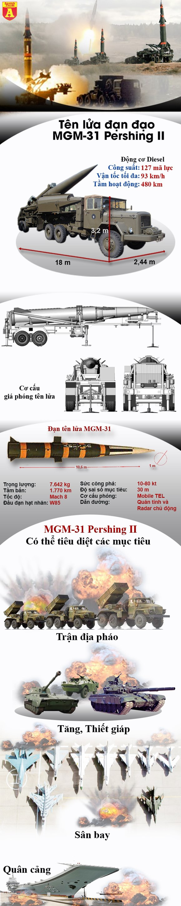 [Infographic] MGM-31 Pershing II - Tên lửa Mỹ từng làm Liên Xô ‘mất ăn mất ngủ’