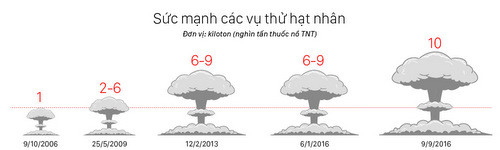 Uy lực 5 lần thử hạt nhân của Triều Tiên. Bấm vào ảnh để xem bản đầy đủ.