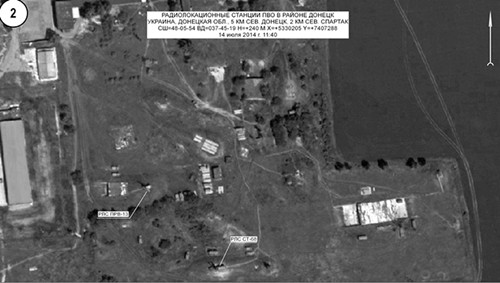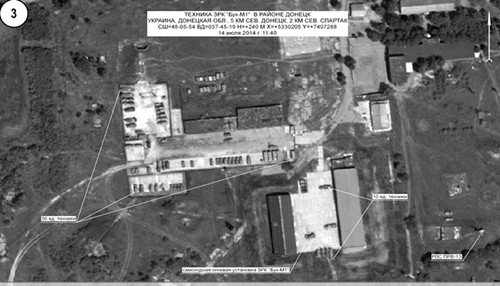 Ba bức ảnh đầu tiên được chụp vào ngày 14/7. Hình ảnh thứ nhất cho thấy các hệ thống phóng tên lửa Buk được đặt cách thành phố Luhansk 8 km về phía tây bắc. Bức thứ hai chụp một trạm radar ở gần Donetsk.