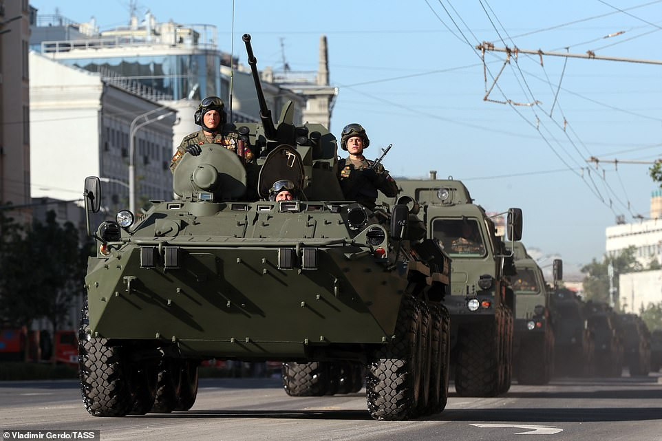 Trong khối diễu hành sẽ có sự xuất hiện của 234 thiết bị quân sự, gồm xe chiến đấu bộ binh BMP-2, hệ thống pháo phòng không Derivation-Air Defense, xe tăng T-80BVM, T-14 Armata, hệ thống tên lửa phòng không S-300B4, hệ thống súng phun lửa hạng nặng TOS-2, hệ thống phòng thủ bờ biển Bal và hệ thống tên lửa phòng không S-350,…