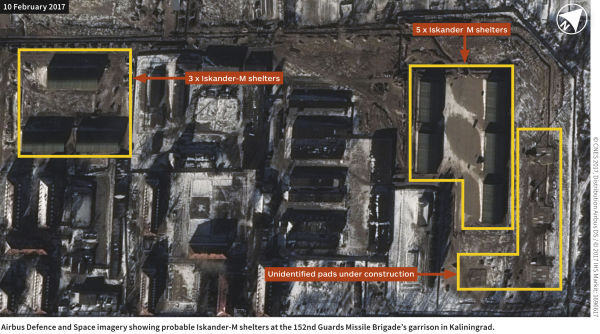 Theo tạp chí Jane Defence Weekly, những hình ảnh thu được từ vệ tinh hôm 10/2/2017 cho thấy tại địa bàn do Lữ đoàn Tên lửa Cận vệ số 152 đóng ở Chernyakhovsk đảm nhiệm, xuất hiện 8 cấu trúc mới, được cho là nơi chứa hệ thống tên lửa Iskander-M.