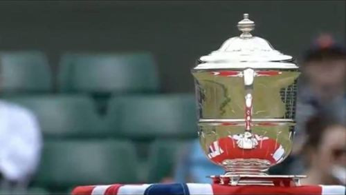 Chiếc cúp vô địch giải trẻ Wimbledon trước thời điểm được trao cho Hoàng Nam và Nagal.