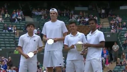 Trong trận chung kết đôi nam giải trẻ Wimbledon đêm qua, Hoàng Nam và Sumit Nagal (Ấn Độ) giành chiến thắng 2-0 trước cặp Opelka/Santillan sau 63 phút thi đấu. Tỷ số các set là 7-6 (4), 6-4.