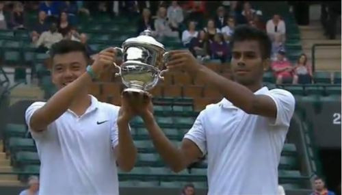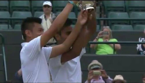 Hoàng Nam và Nagal nâng cúp vô địch Wimbledon.