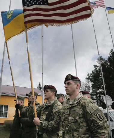 Theo hãng Tass, khoảng 300 lính nhảy dù thuộc Lữ đoàn Không vận 173 của quân đội Mỹ đã đến Ukraine tuần trước và sẽ tham gia huấn luyện 900 vệ binh quốc gia Ukraine trong vòng 6 tháng tới theo Chương trình Người bảo vệ Dũng cảm (Operations Fearless Guardian). Tuy nhiên, Mỹ khẳng định sẽ không cung cấp vũ khí hay huấn luyện giết người cho vệ binh Kiev.