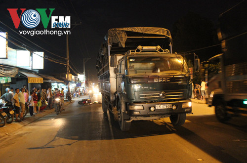 Bé Kim văng ra phía ngoài thì gặp xe tải BKS 51C – 078.59 từ sau chạy tới. Tài xế không xử lý kịp đã cán qua khiến nạn nhân tử vong tại chỗ, người phụ nữ văng vào trong lề nên thoát nạn.