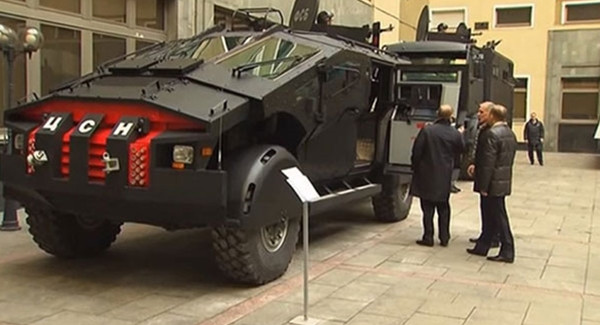 Giám đốc FSB, ông Alexander Bortnikov cùng Bộ trưởng Quốc phòng Sergei Shoigu đích thân tháp tùng Tổng thống Putin kiểm tra chiếc xe chiến đấu to lớn. Zil Karatel, có mật danh “Chủ động tấn công” thật sự chinh phục các lãnh đạo nhà nước Nga.
